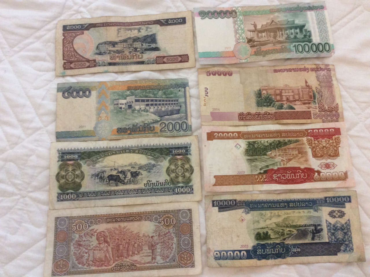 最近は最高紙幣で10万キップ札も出ました。日本円で千二百円くらいしますから