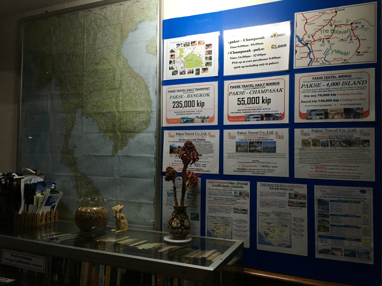 ラオス南部の観光の拠点となるパクセで、各種ツアーや移動手段などを仕切っている会社があります。