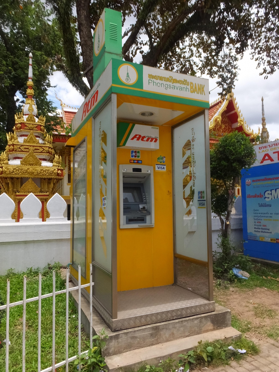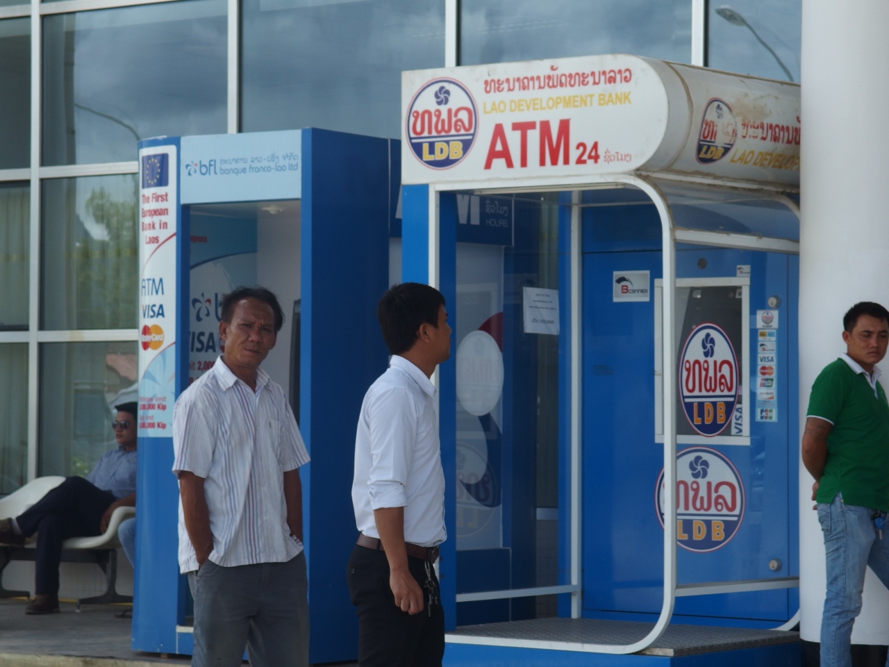 ルアンパバーン空港には1軒のみ銀行の両替所があります。2015年8月13日時点、日本円は64円強。町中はどこも63円だったから、空港が一番レートが良かった。きちんとレシートもくれた。そして、空港の外に出ると、ATMが何台もあった・・・。焦らず確認が必要ですね・・・。