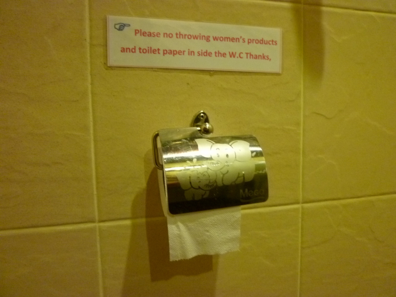 ホテルや空港やレストランのトイレなど、けっして汚くはないですが、下水道事情があまりよくないようで、使用後のトイレットペーパーをトイレに流さないようにと、様々なトイレに表記してありました。汚い話ですが、使用後のトイレットペーパーが流せないなんて、ちょっといやですね。仕方なくペーパーでぐるぐる巻きにして、備え付けのゴミ箱に捨てておきました。