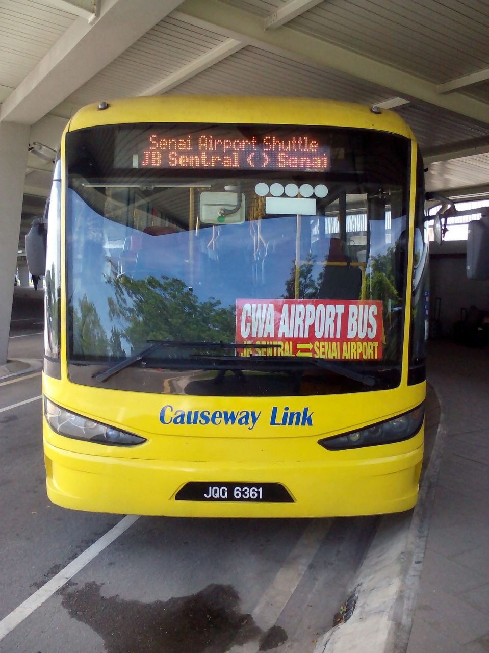 マレーシアのジョホールバル空港と、ジョホールバル・セントラル駅の間には空港バスが走っており、8リンギッで利用することができます。空港では到着ロビーに乗車券を発売するカウンターがあり、ジョホール駅では、イミグレ側のバスターミナルに乗車券を発売するカウンターがあります。