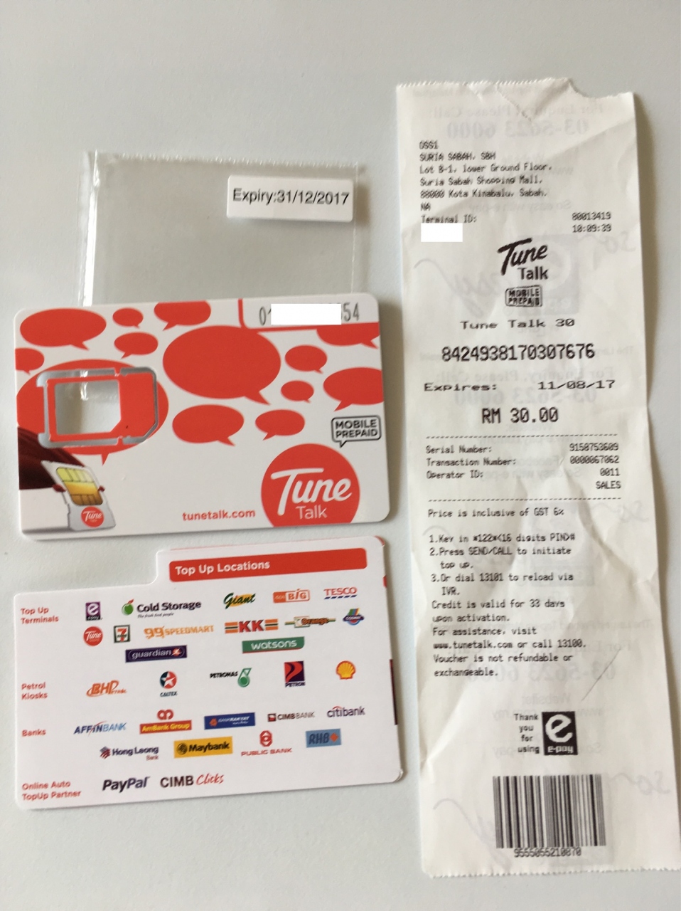 他の携帯やルータにはクアラルンプール空港で購入したcelcomのSIMを指してありiPhone4sはテザリングで使っていたのですがボルネオへ移動してからコンビニでSIMの一覧表を見せていただき1G MR30ならルーターと共用も出来るので買ってしまおうと思い入手。