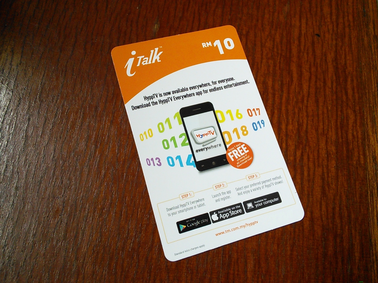 私は日本の固定電話に10分ほどかけたので実質料金は2RMほど。ですがカードのミニマムは10RM、かなり余ってしまいました。ほかには20,30,50RMのものがあります。カードの有効期限は3ヶ月です。 -