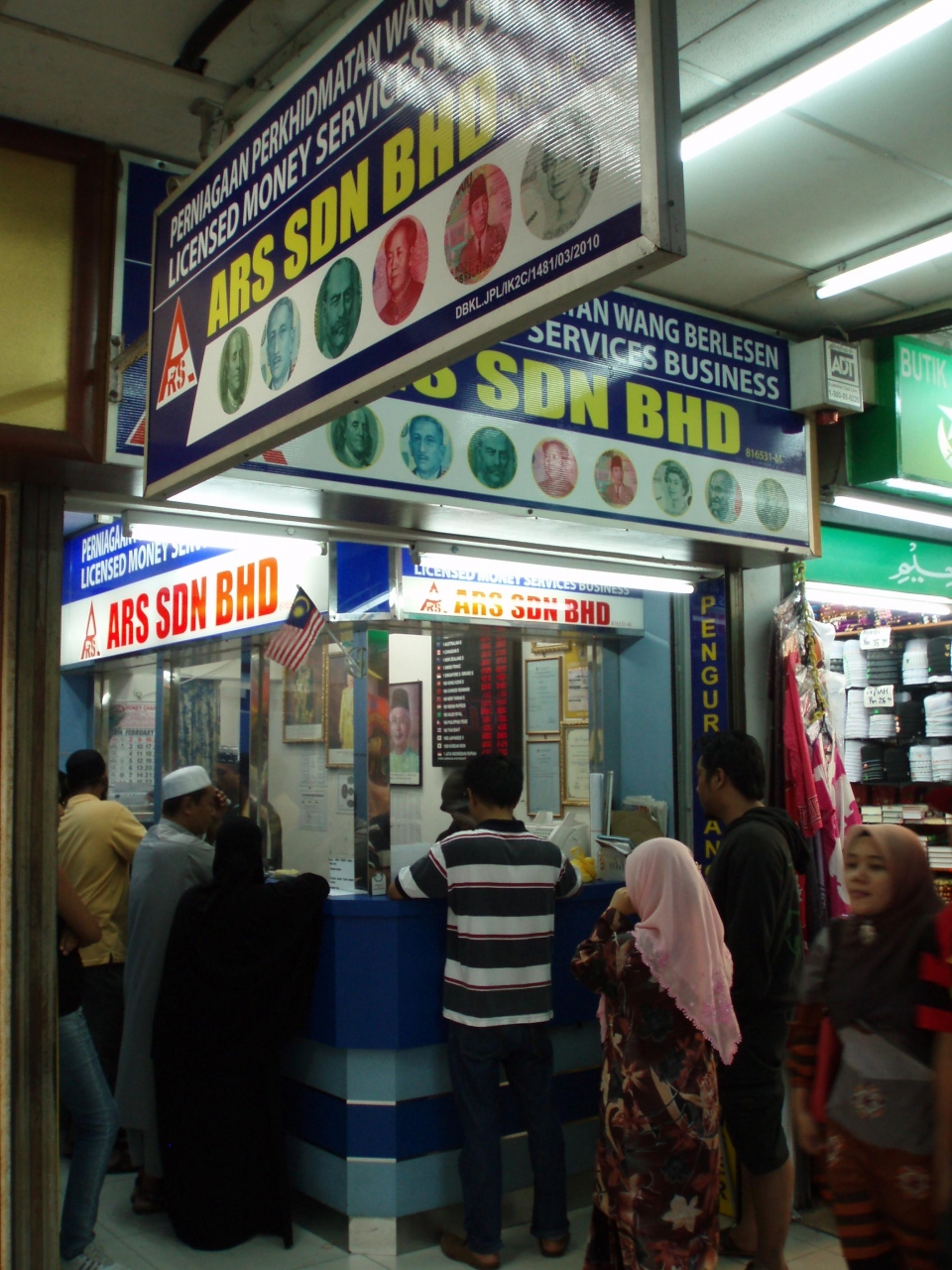 クアラルンプールの新交通システムの2つの路線が交差するLRTのMasjid Jamek駅から歩いて10分ほどのイスラム人街の中心に位置するMasjid Andiaモスクの周りの両替商はクアラルンプール滞在中もっともレートが良かったです。