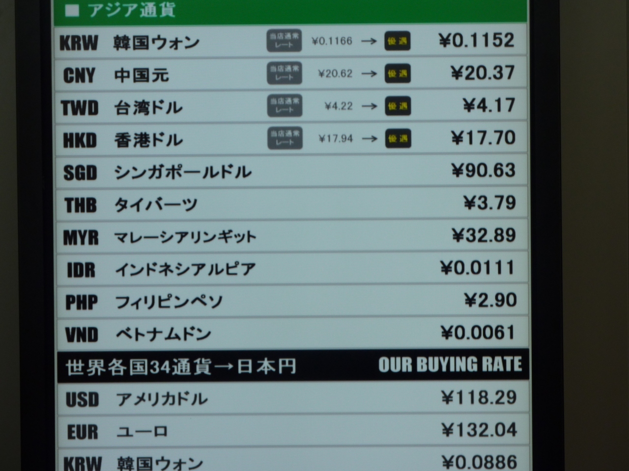お店によりますが2%UPでカード払いが可能なショップもあります。2%アップでもカードで払った方が現金で払うよりレートはよかったです。