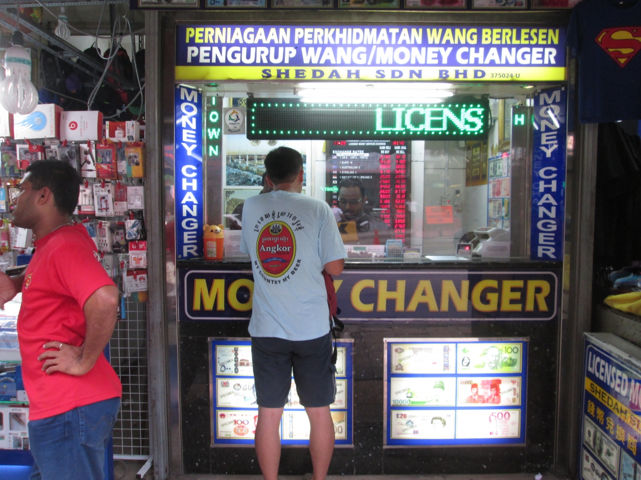 ブキッ・ビンタン通りに面している写真の店で両替しました。1万円に対して299リンギットというレートでした。通りには両替所がたくさんあり、どの店も大体レートが表記してありますので、良く確認してから両替すると良いと思います。
