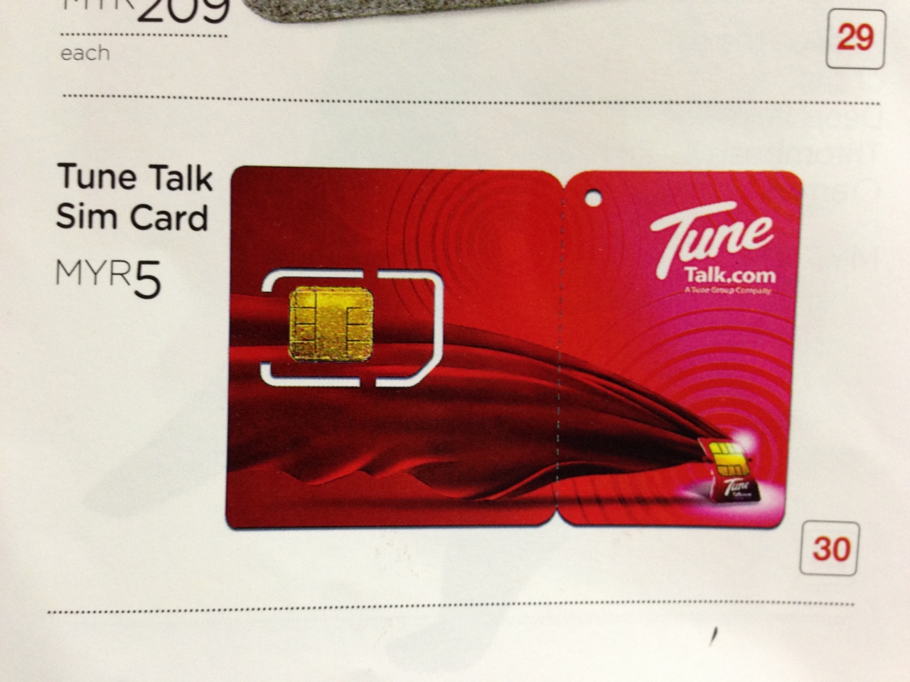 マレーシアにもいろいろプリペイドSIMはありますが、TunetalkはRM5(5リンギット、約150円)なので買いやすいと思います。バスターミナルやショッピングセンター、空港で購入できます。エアアジアでクアラルンプールに行かれる方はフライト予約時(200円)または機内販売(RM5)でも購入できます。