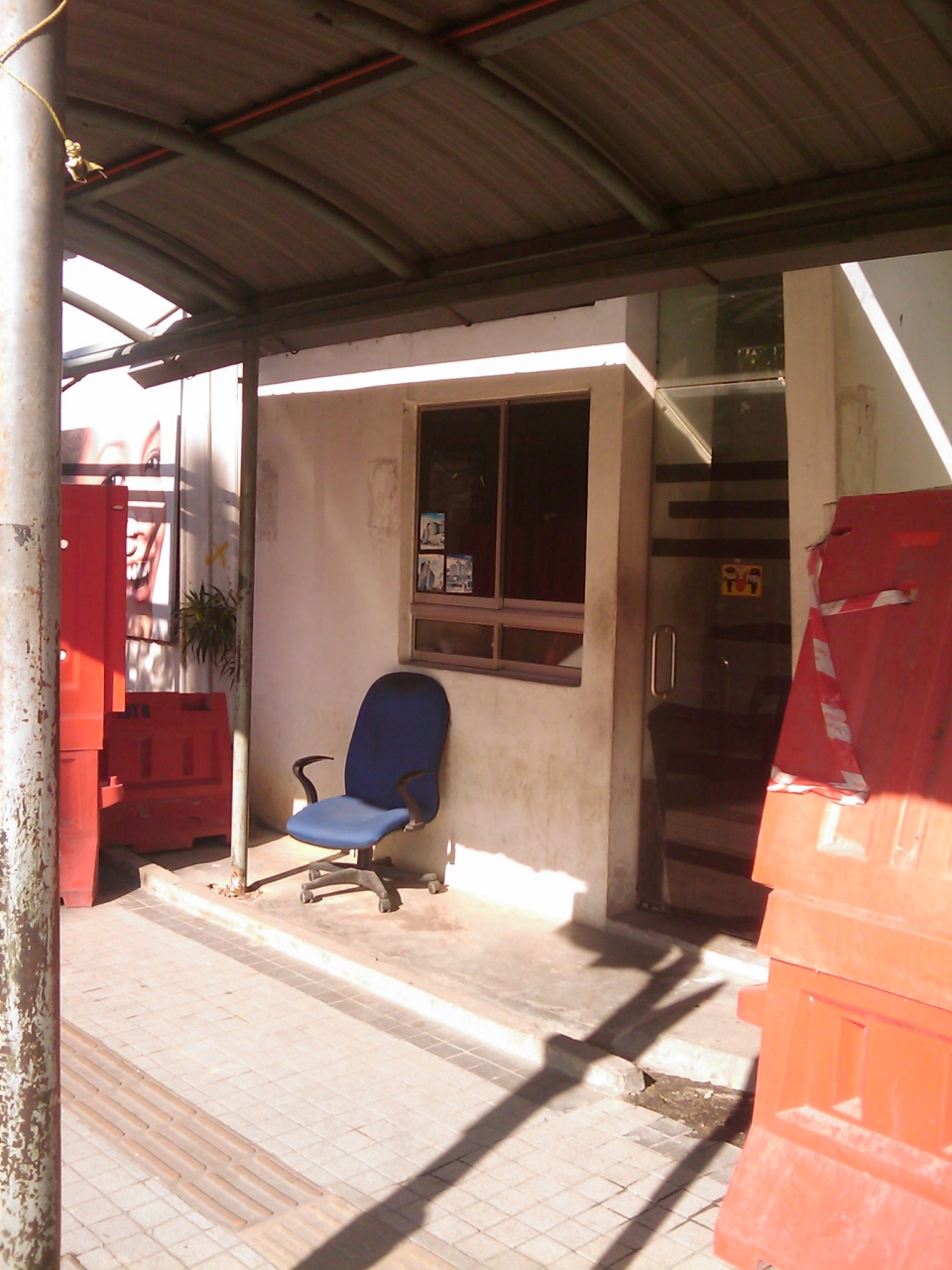 空港バスが駅のバス乗り場から大通りに出てくる道路の脇にあるこの交番が近くにあり