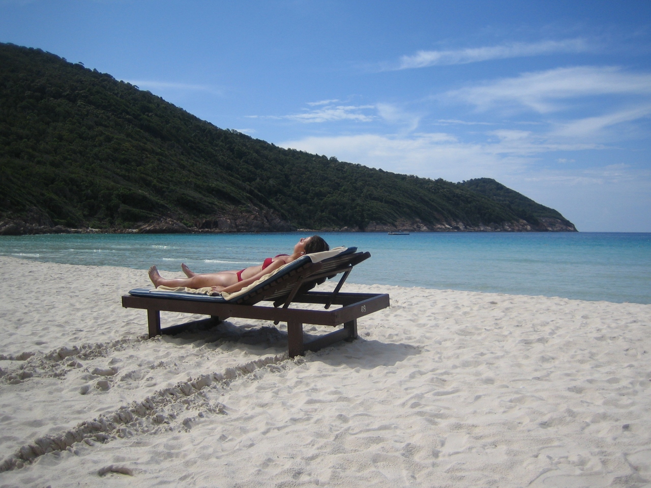 アジアンリゾート中心の旅が多いので、必然的に「蚊取り線香」や「虫除けスプレー」などは常に持参し、 虫に刺されない対策をとっているため、滅多に虫刺されには悩まされたことのないワタシたちでしたが・・・。 レダン島では、D氏がやられました! ガ~~ン! 多分、「サンドフライ」と呼ばれている、刺されると非常に痒く、しつこい痒みにしばらく悩まされるという噂の虫です。 辞書によると「サンドフライ」とは 和名:サシチョウバエ 吸血し、種類によっては病原菌を運ぶ・・・とありました。 いつやられたのか?わからないほど、刺された時の刺激がなかったので気づくのが遅かったのですが、 なんと全身で7~8ヶ所もアチコチ赤く腫れあがり、 日が経つにつれモーレツな痒みに襲われました・・。 ホテルのゲストをよくよく観察してみると・・いるわ、いるわ!みんなやられてました! 足を集中的にやられている若い女性も数人。 背中を中心に上半身全体的にやられている男性も。 見た目にも悲惨な印象ですし、本人も痒みで、相当ツライと思われます。 予防するには、こまめに虫除けスプレーをすることでしょうか。ちなみにワタシは、タイ・クラビで購入した「レモングラスの虫除けスプレー」のニホイがお気に入りで、しょっちゅうスプレーしていたせいか、運良く?まったく刺されませんでした。 レダン島のビーチでだらだらする時は、ご用心です! お肌を守る、日焼け止め&虫除け対策を忘れないようにいたしましょう♪ 写真の素敵な彼女も、よ~く見ると足、刺されまくりでした。(*_*)