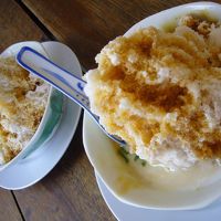 ざっくり削った氷に小豆、ゼリーみたいな緑色の粒(=これをチェンドルと呼ぶ)、ココナッツミルクと黒糖シロップがかかっているデザート。見た目に反し、甘すぎることもなく、さっぱりといただけます。