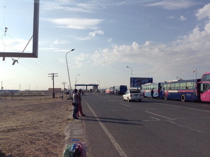 モンゴルを出て中国に入国するとモンゴルから乗ってきたバスが待っています。