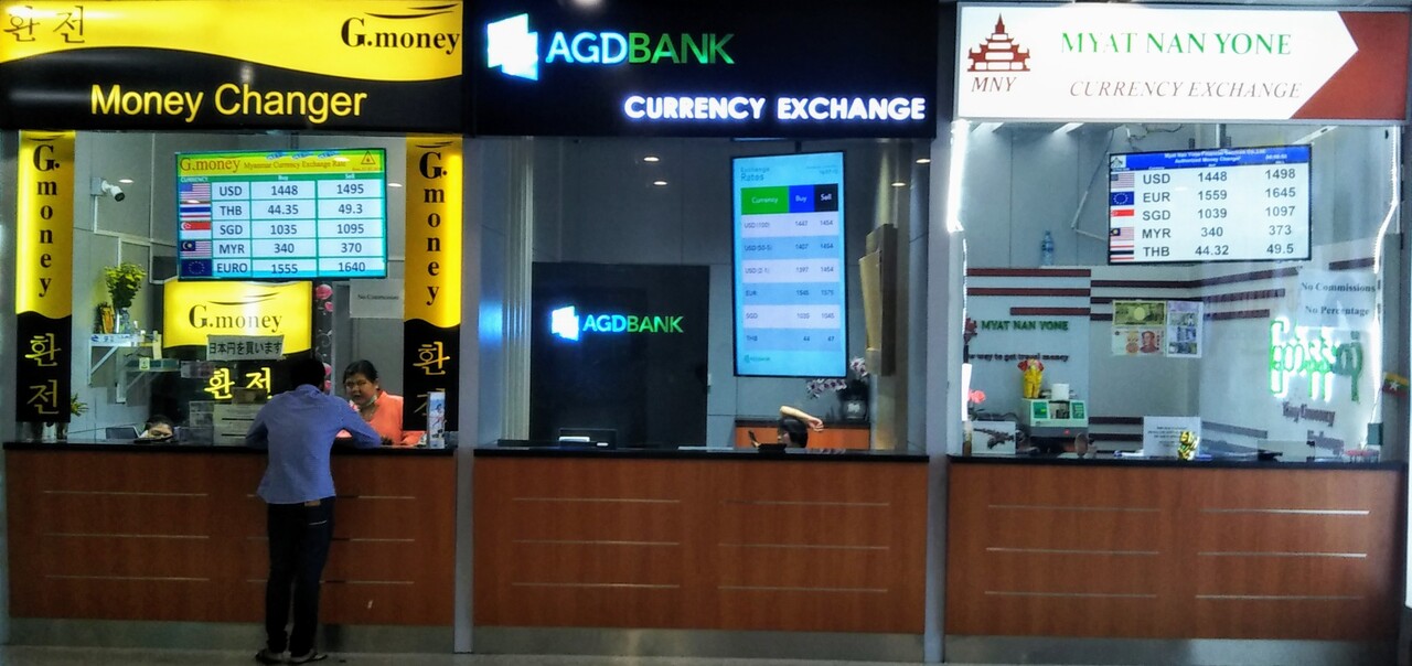 個人的なお薦め:市内に行くまでは現地通貨(Ks)がないとどうしようもありません。ただ空港のレートは非常に悪いです。 なお現在ヤンゴン空港から市内中心までは、配車アプリは2.2~2.5万Ksで、出口付近のタクシ-は約3万Ks又は10ドルです。すなわち空港の両替レ-トでは3万Ksは約2100円なのですが、10ドル(約1500円)で市内に行き、ショッピンセンタ-(多いです)などにある両替商や上記に書いた両替商に行けば、かなりお得に観光ができます。 また夜ならば、ホテルなどでも両替商よりはレートは少し悪いですがドルの両替は可能です。