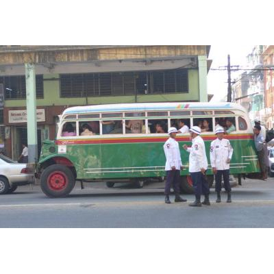 ヤンゴンエリアの道路はバイクの走行が禁止されていますので、バイクは1台も見かけません。