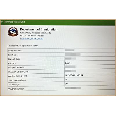 一方、ネパールの到着空港で取得するArrival Visaはあらかじめ日本でオンライン申請をしておけば必要なのは申請時にダウンロードした受付票と申請料金30USドルのみ。