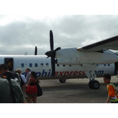 カティクラン行きの国内線は、遅れることも多かったり、遅れるだけならまだよしとして、風の影響でカリボ空港行きに変更になることが(確率はどのくらいかわからないけど)けっこうあるようなので、タイトなスケジュールの方は、予定が狂って大変かもしれません。実際に2回行ったうち1回はカリボ行きに。