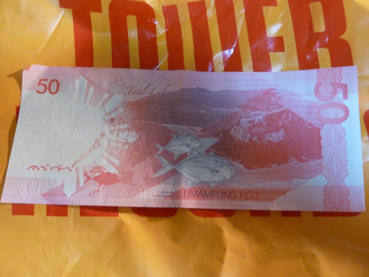 お金をチェックしていたら P50紙幣が 2種類 あらっ? P50も新しい紙幣が出てたのね 表は 何の絵かな レイテ島の マッカーサー・ランディング・メモリアル・パークの像でしょうか? 推測です 合ってるかは分かりません 裏は・・・・・タール湖に 何の魚かな? ティラピアか これも推測です 誰か正解知ってますか??
