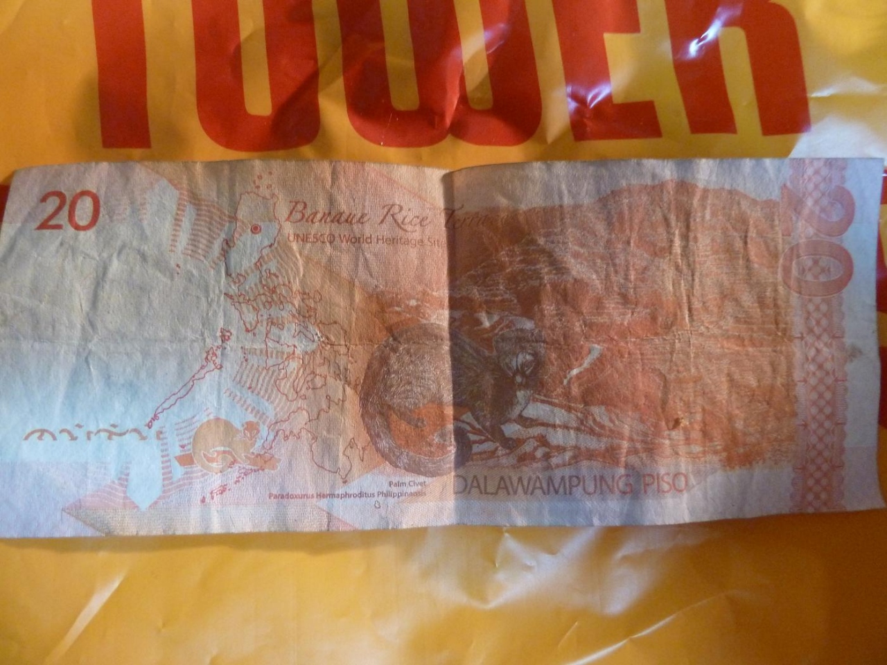 P200 P50 と来れば 他にもあるはずだ んで 見つけたのが P20 こいつも新しい紙幣が 表は ??何の建物か分かりません 裏は バナウエの棚田と 何か分からない動物の絵が こいつは何者でしょうか? 分かりません・・・・(笑 分かる方は 口コミお願いします ひょっとしたら 他にも P100、P1000、P500の新しいのが あるのか?