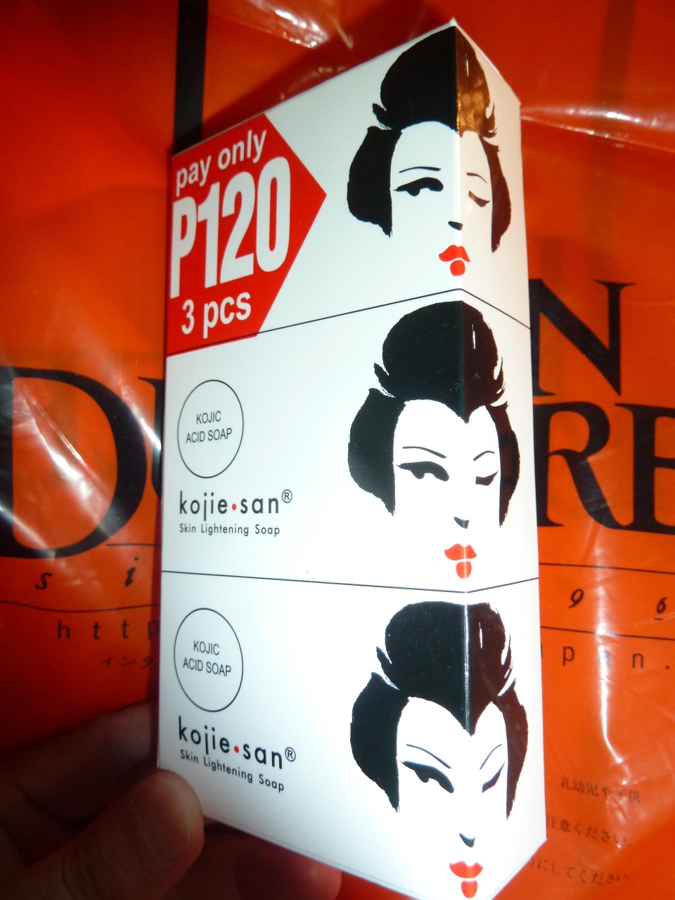 お勧め石鹸 #3 kojie・san パパイヤ石鹸意外と高いP80 もっと安いのがないか? あります 3個入り P120 1個P40 普通のパパイヤ石鹸 だいたいP20~P30なんですが これでもP40なんで やっぱちょっと高いっすね 顔のマークが目印です・・・・