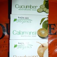 お勧め石鹸 #2 kojie・sanのパパイヤ石鹸紹介しましたが 今回もお土産として kojie・sanパパイヤ石鹸をSMに買いに行ったのですが あれっ? パパイヤ石鹸がないっす って事で しょうがないので 同じkojie・sanの石鹸 きゅうりにカラマンシーにバンクワン カラマンシーは柑橘系みかん類 バンクワンは野菜 味はりんごっぽいっす 臭いはどれもさすがに良いっすよ