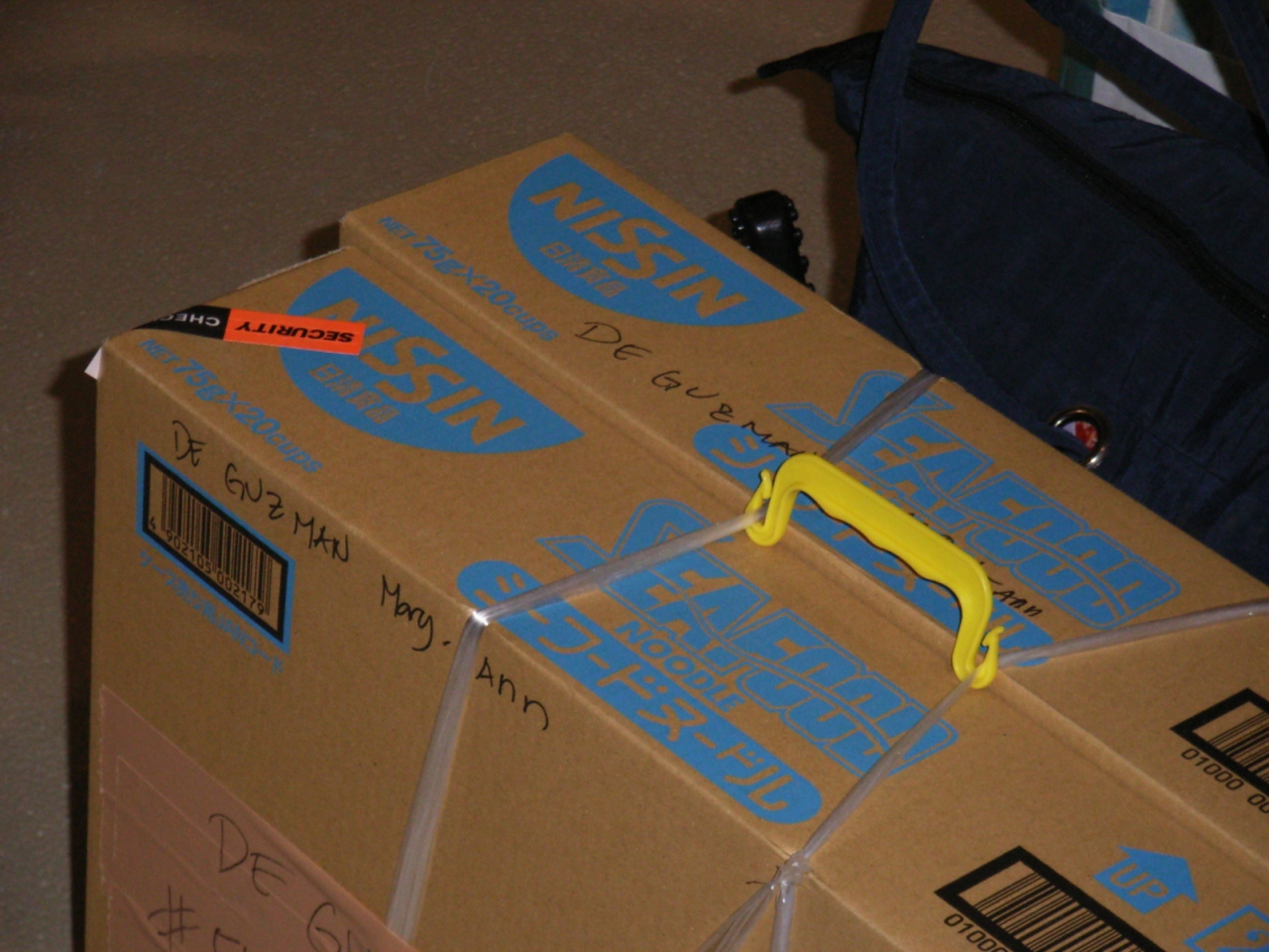 空港についてビックリ!正月でもないのに既にカウンターまで約50mの行列です。カウンターまで約5mまで近づいた所で気づきました。フィリピン人と思われる方のほとんどが、カップヌードル(シーフード)を2箱持参しています。(数年前は、ない光景でした)