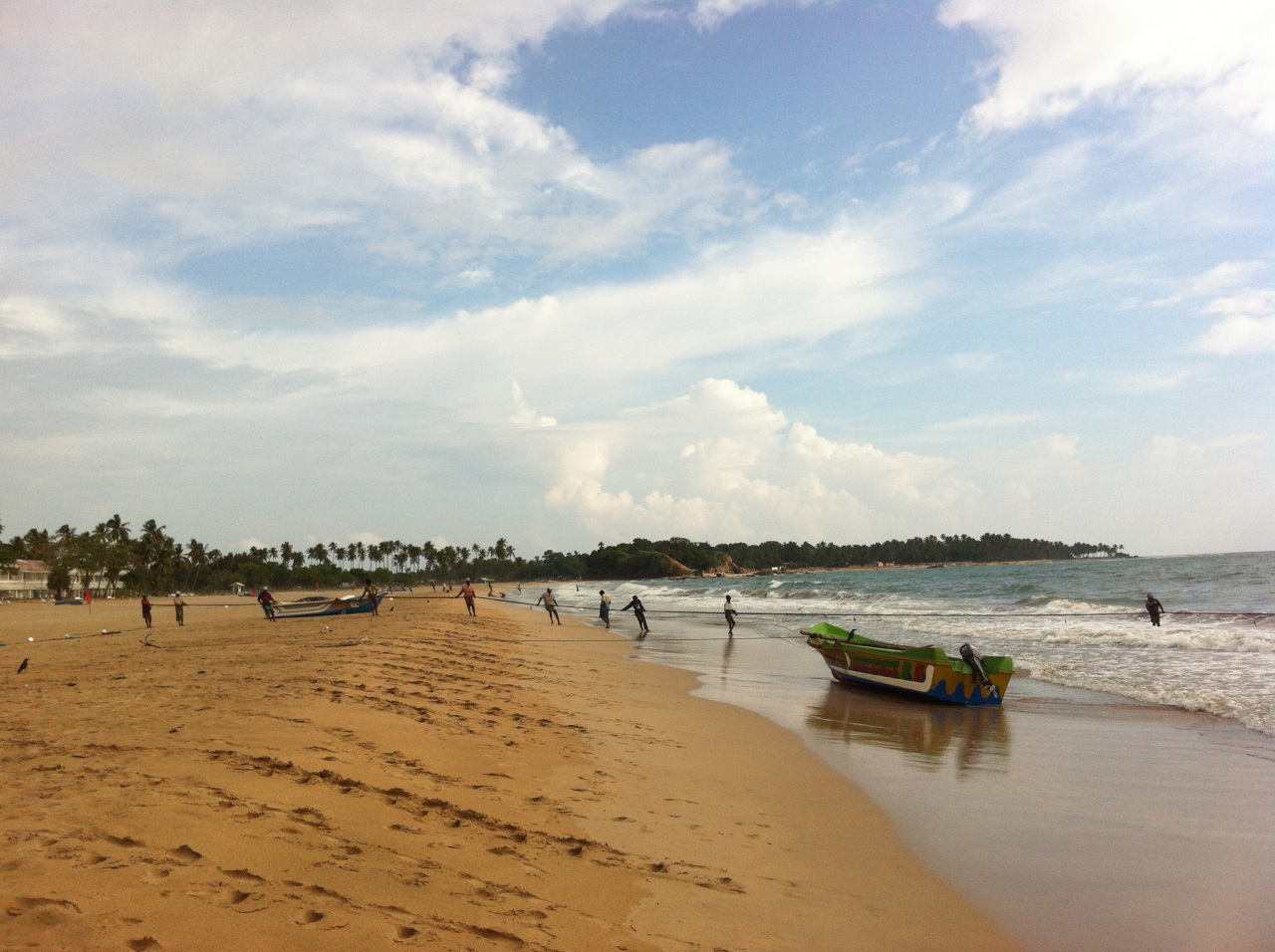 ビーチでは地元の漁師が毎日地引き網漁をしています。