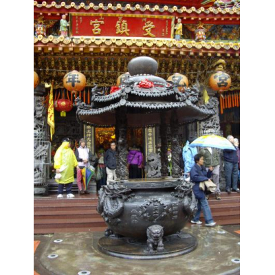 阿里山森林健康歩道沿いにある受鎮宮は、1969年に改築された森林区最大の寺廟。中には玄天上帝、福徳正神、註生娘娘の神々が奉られているのですが、線香の煙がもくもくと立ち上っています。