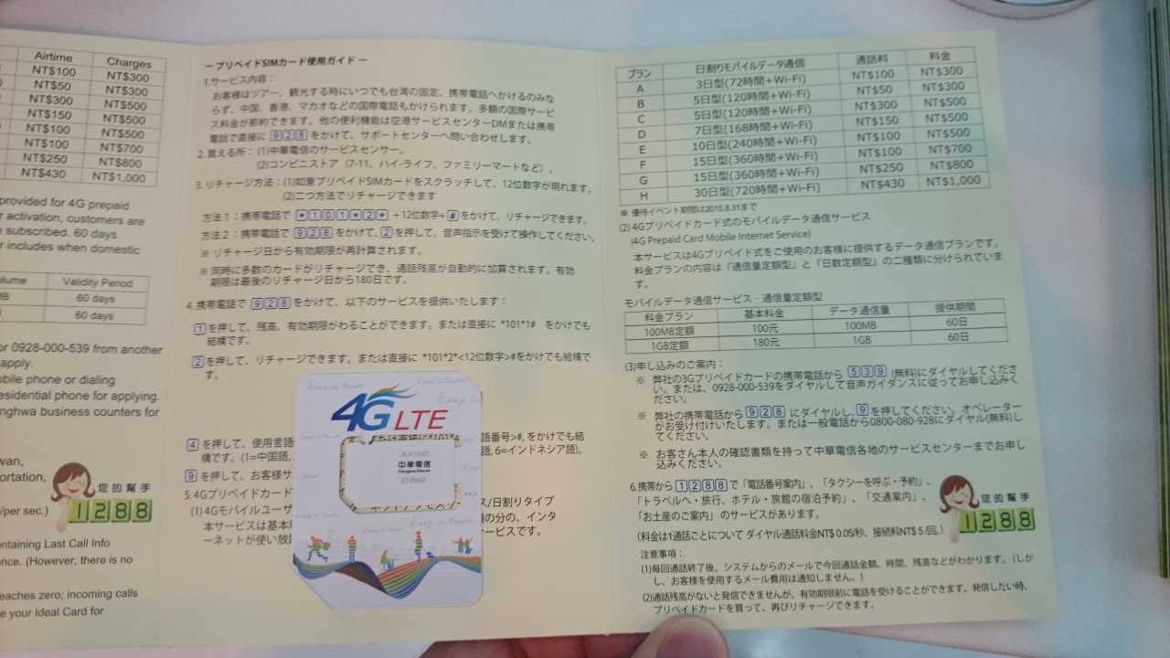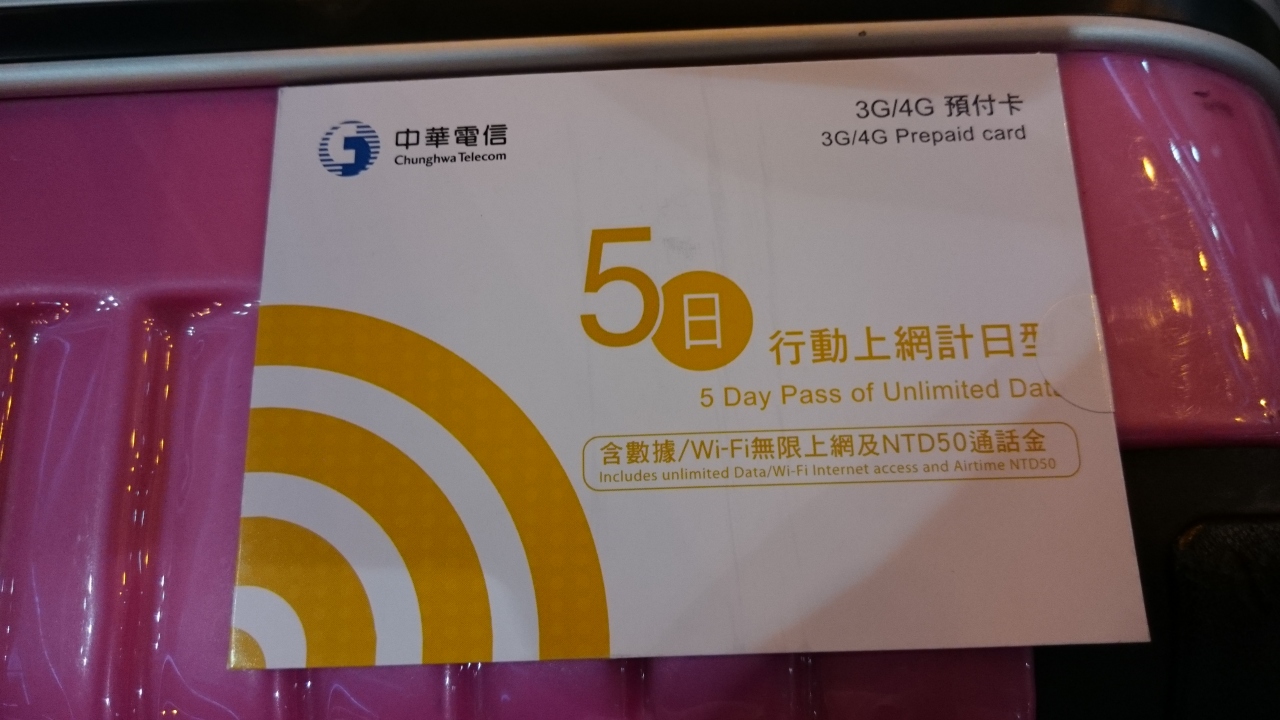 値段も7日間で500NTD程度(1,500円くらい)なので、凄く安いですね。