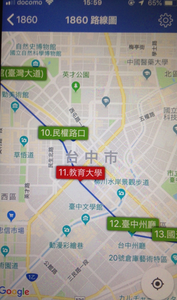 今回、桃園国際空港から台中へ行き、ホテルが中華夜市近くだったので、終点まで行かず、最寄りのバス停で無事降りることができました。