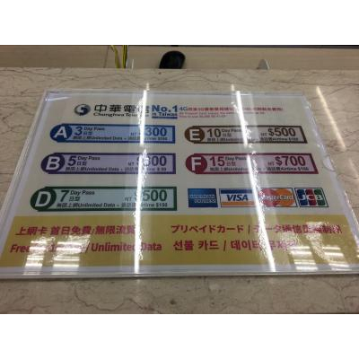 制限区域を出てすぐのカウンターで中華電信のSIMカードを購入しました。パスポートのコピーを取られ、設定は2分ほどで終了。元のSIMカードを入れる袋をくれるのもポイント高いです。市内で問題なく繋がりました。