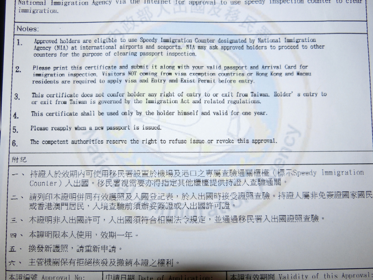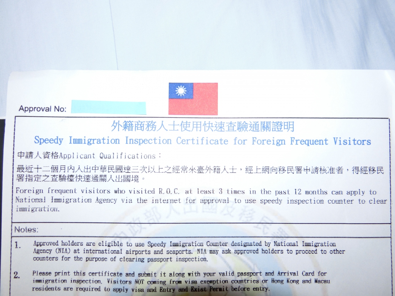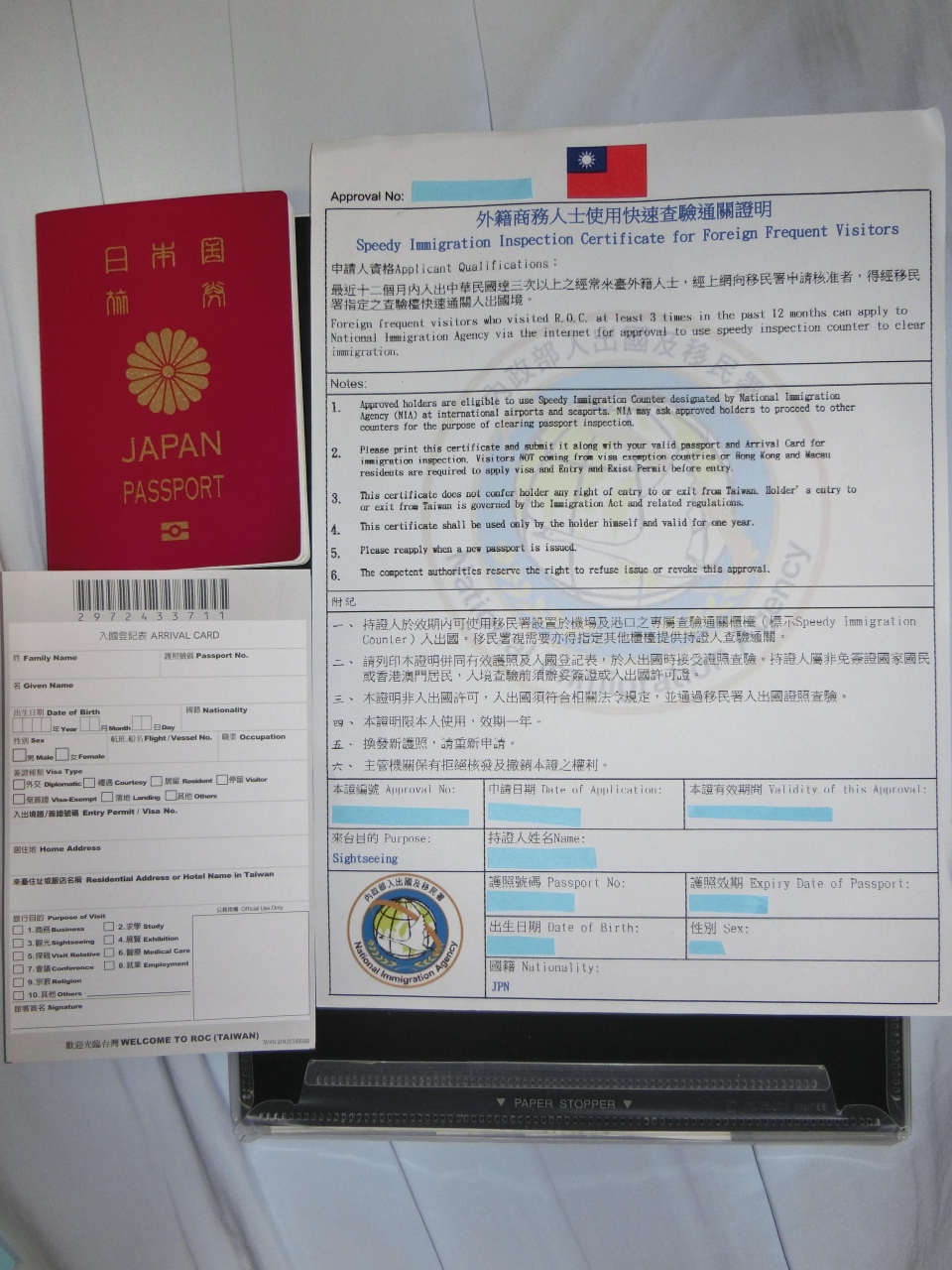エラーが気になり届いた入国審査証を念の為、印刷して台湾に行きました。