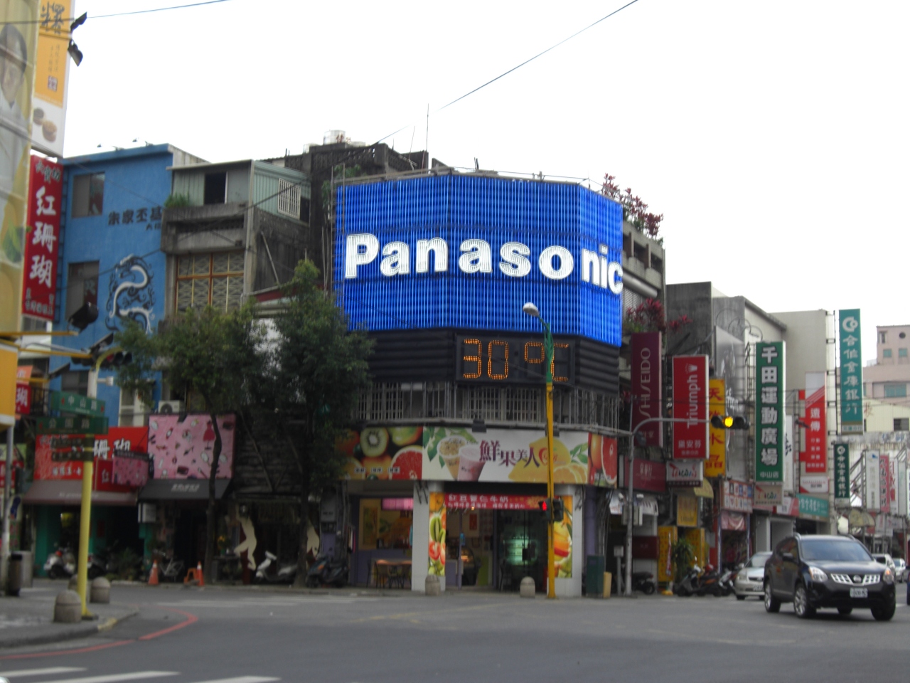 午後になって、異国でみると何だかなつかしいPanasonicのビルに、30、何とかとデジタル表示。