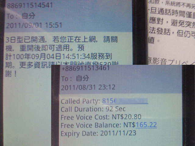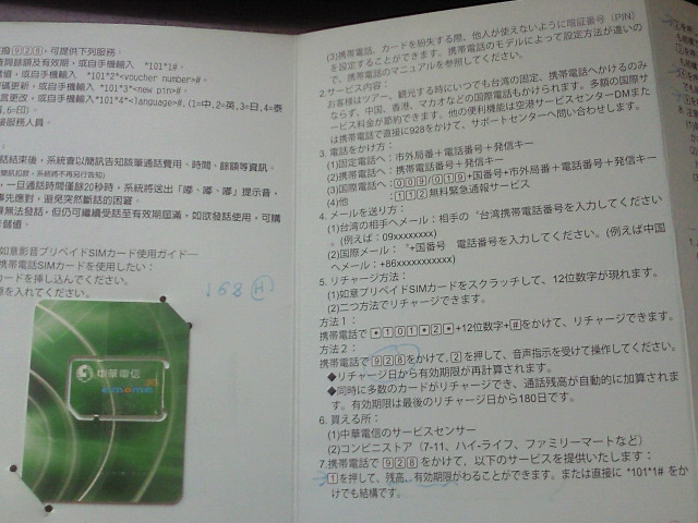 ・・・・ 1000NT$ + おまけ 330NT$ の通話可能