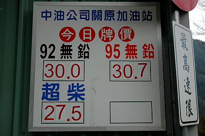 ここから更に西に行くと、次は中部横貫公路(=東西横貫公路、8号線)の先の梨山の町か、大禹嶺のジャンクションで14甲号線(中横公路霧社支線)に入った先の霧社近くまでガソリン・スタンドは無かったと思います。