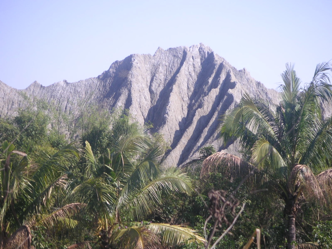歩いて5分くらいの近景写真です。第二高速田寮で下りて東に3km位。観光施設はありません。展望台があったらいいのに。急峻過ぎて登れないし。いっそ除草剤を撒いて植物無くしたら観光価値が上がるかも。この日は雨の後だったから良かったけど日照りが続くと土ぼこりがすごい。濡れた泥は粘土の様に粘稠。泥パックに使ってみたい。28号線の脇の農道を入って車の中から10分くらいの観光で足りる。28号線前後には鶏城が多いです。