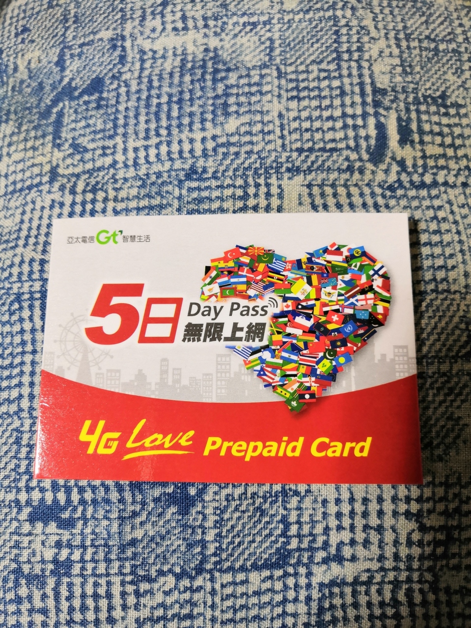 ・今後は台湾に旅行する際は、迷わず中華電信(軽量型)を選択する。8日程度であれば、1.2Gでも事足りる。足らなかったらトップアップ(チャージ)すればよい。