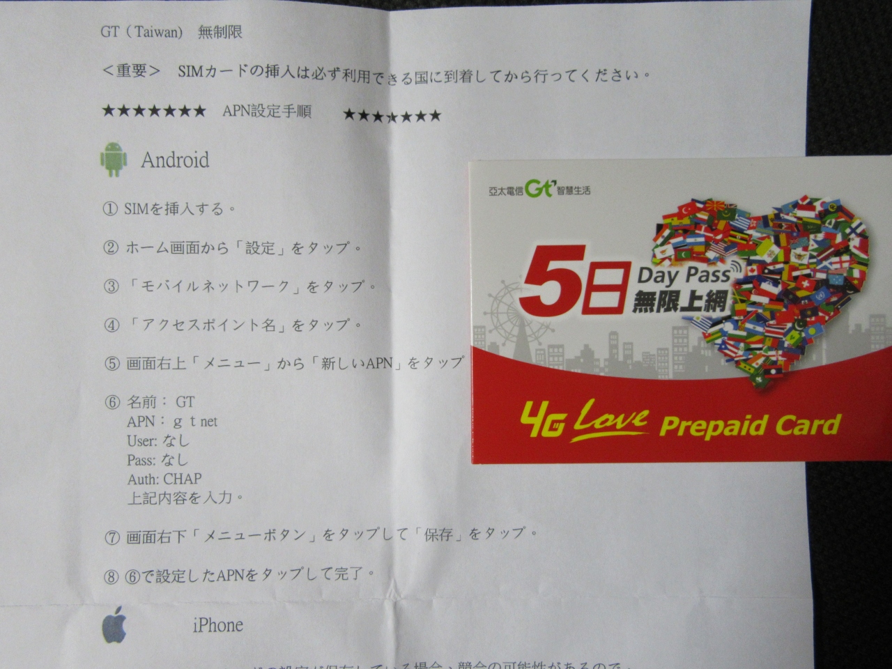 設定不要と書きましたが、購入するとカウンターの方がSIMの入れ替えから設定まであっという間に使える状態にしてくれます。4Gのデータ通信で台北市内、淡水方面で地下鉄内なども問題なく使えましたし、速度も全く気になりませんでした。プリペイドSIMなので返却の必要もないので楽でした。
