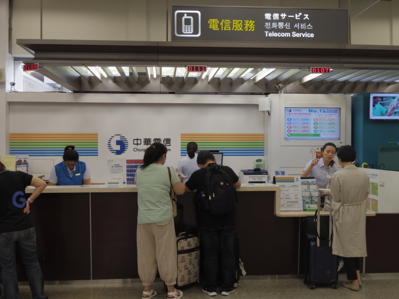 桃園空港には、台灣大哥大、中華電信、遠伝電信の3社が旅行者専用simカードを販売しており、サービスも価格もほぼ同じです。ただ、中華電信と遠伝電信は窓口に行列ができているのですが、台灣大哥大だけはなぜかガラガラなので私はいつもこちらを選びます。(笑)