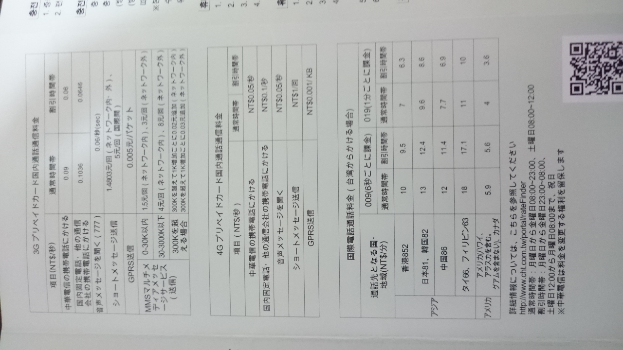 訪台に合わせて台湾のSIM事情を調べたところ、中華電信のキャンペーンで3Gの料金プランで4Gが使用できる(2015年8月31日まで)との事だったので、中華電信SIMを購入しました。5日間データ通信+通話料50ドル分で300ドル。