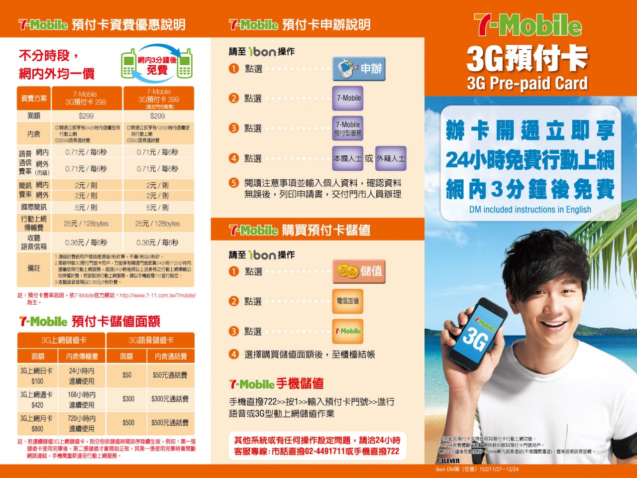 英語での説明 http://www.7-11.com.tw/7mobile/english1_1.html