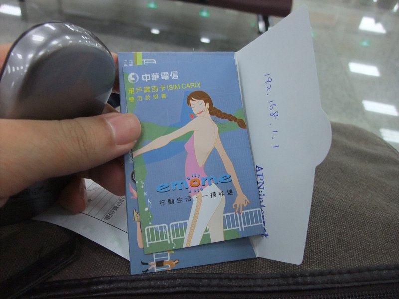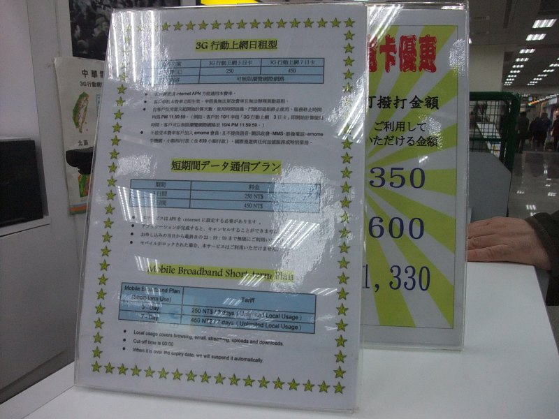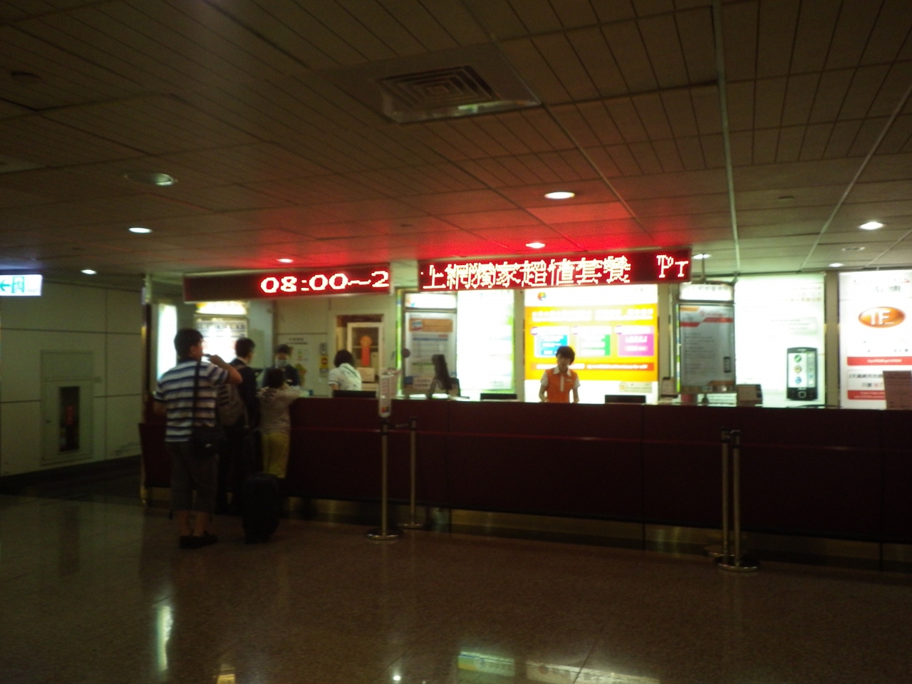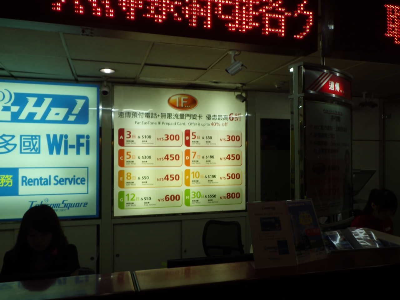 購入したのは中華電信の3G SIMカードで、空港の到着ロビーにあるカウンターに行って、3G で3日間のやつをくれ~とお願いすればOK。