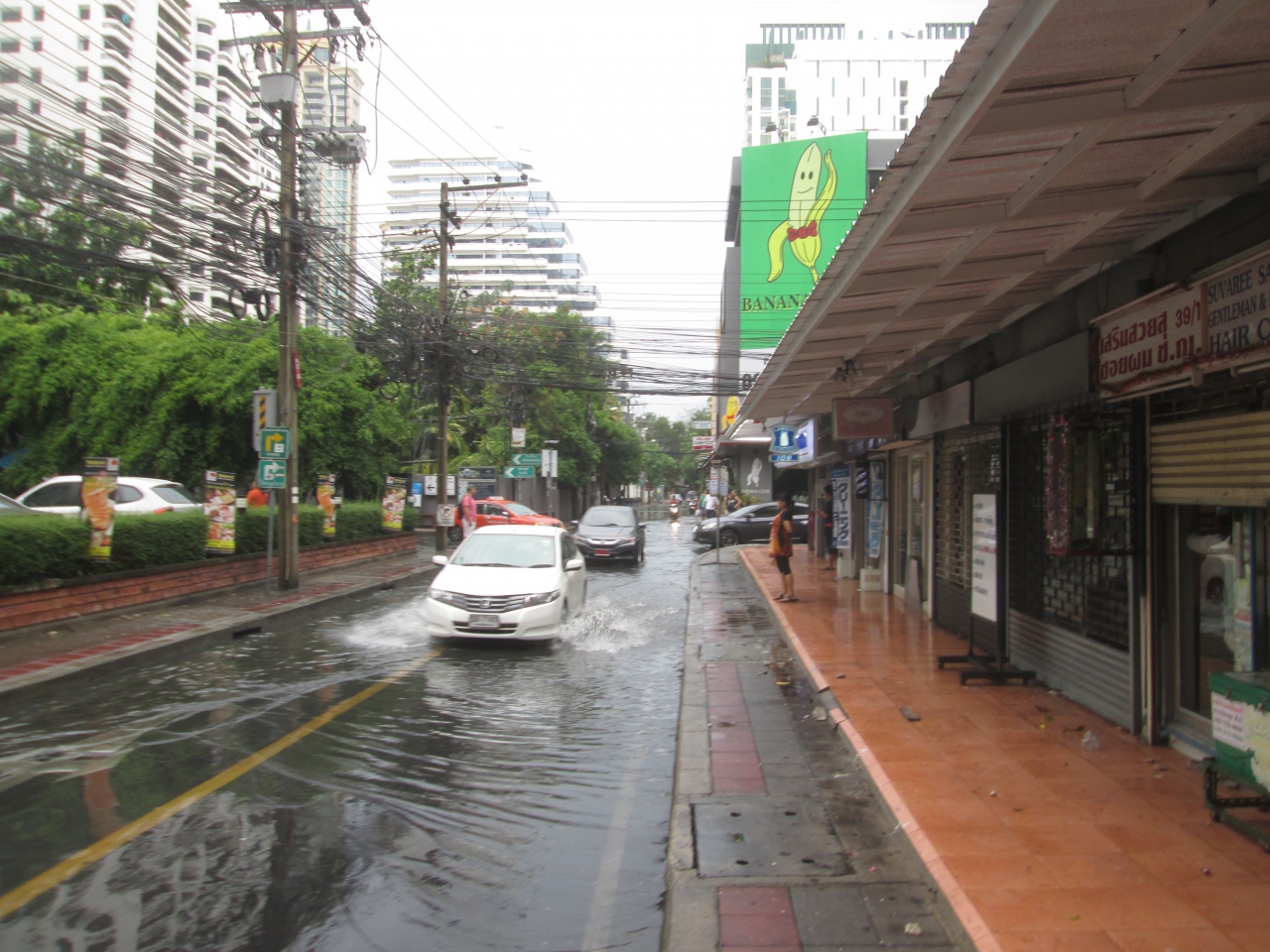 バンコクは水はけの悪い道が多くあり、スコールの後は水たまりになってしまうので、汚れてもいい靴かサンダルを用意しておいた方が良いと思います。 -