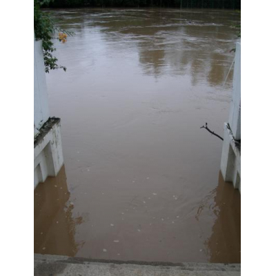 普段ならここは下に下りていける階段があり20?30段ほどあんる階段の上まで水位があるということが既に洪水を知らせるポイントで・・