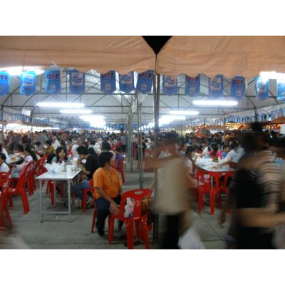 洪水で気分も沈みがちな人々には金・土・日のこの行事は少しホッとするひと時だった様子だ・・駄目になッた衣類・・・駄目になつた寝具など捨てるだけの物が沢山ある中で・いかにして新品を易く仕入れるか・・・と言うところで表れたる安売り行事・・・皆の買い物の目線はもっぱら・・寝具類や衣類・サンダル・食品らしい・・その店の前に」は人だかりの山と順番待ちの列・・だ・・・一休みの食事風景は忙しそうですね・・・ここは10月2日までで終了ですが・・この後の行事は垂れ幕が掛けられた賑やかさをかもしだしていました・・楽しみの出来そうな行事がたくさんありそうですよ!!