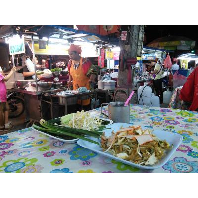 チュムポンでは駅前から続くクロム ルアン チュムポン通りに夕方から屋台が出ますがカオパットは50Bと強気の値段設定です。エビやカニが入っているスペシャルなんでしょうか?それともツーリストプライスでしょうか?(タオ島行く旅行者がいっぱいいるからね) 真相は不明ですがそんなめんどくさそうなカオパットよりパッタイの方が断然お徳です。30Bで野菜がどっさり付いてきます。チュムポンではパッタイで決まり!