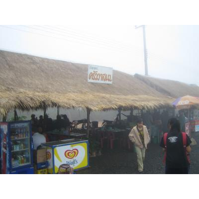 カオ・プラ・ビハーン遺跡のタイ側国立公園入口にある茅葺のオープンエアー食堂、トーセーンでの昼食。