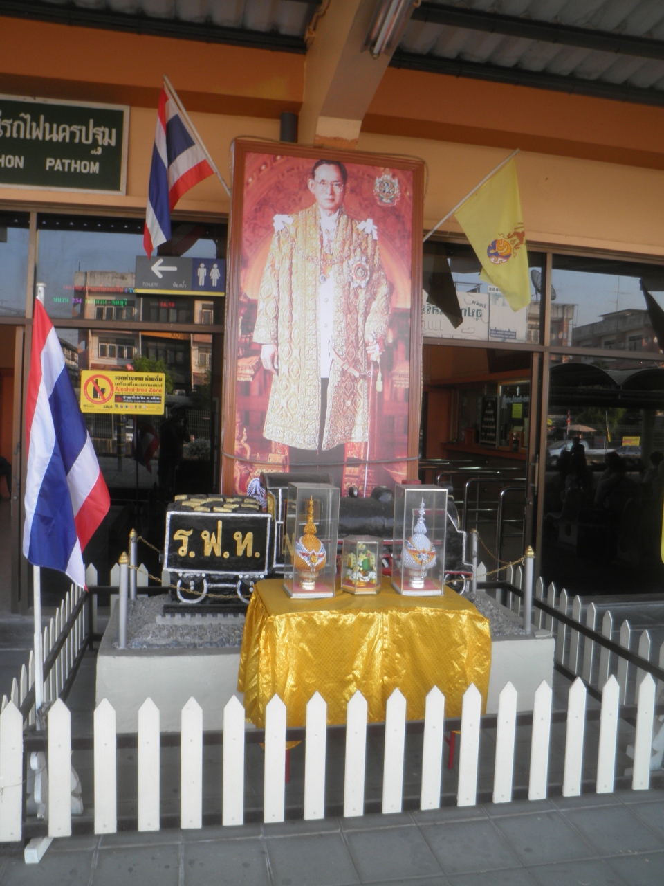 ナコーン・パトムは、タイの首都バンコクから国鉄で2時間程度の距離に位置する、大きなオレンジ色のチェディで有名な街です。 バンコクから日帰りで来るひとが多いためか、駅の周辺では観光客用の大きなホテルや両替商などは見かけませんでした。 両替商が入っていそうな大きなショッピングモールは駅の近くにないようなので、バンコクですませておいたほうがいいかもしれません。