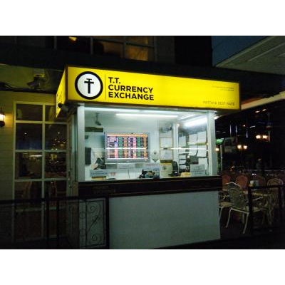 パタヤでの両替なら「T.T. CURRENCY EXCHANGE」がお薦めです。市内のも何件も有り、黄色い看板、建物が目印です。観光がてら街をウロウロしながらいくつかの両替所のレートを確認しましたが、ここが一番両替率が良かったです。