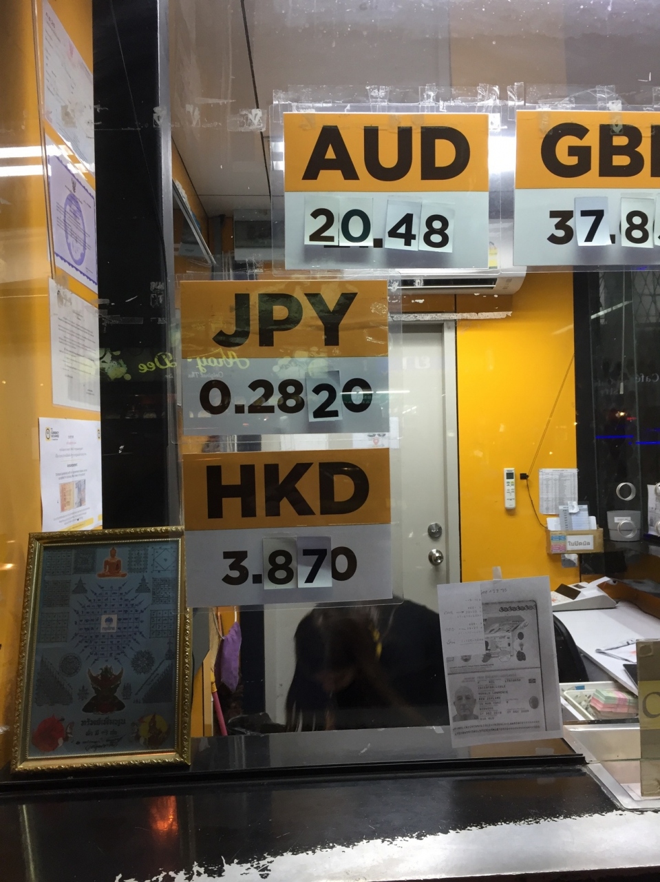 黄色い看板のT.T.Currencyの両替レートが一番いいようです。