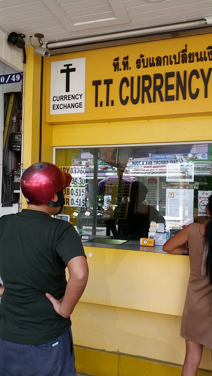パタヤにもたくさん両替屋さんがありますが、このTTという黄色の看板の両替屋さんはたくさんあるとともに、レートがとても良い店です。