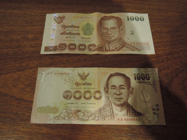 昨年までは流通量が少なかったためのか、それとも無かったのかわかりません。しかし、今回は初めて新1000バーツを拝見しました。タイ人は自分が見たことがない札は偽札判定か、もしくは使えないと平気で付き返すことがあります。100バーツ札で経験済みです。今回は無事に使用でき、杞憂に終わりました。